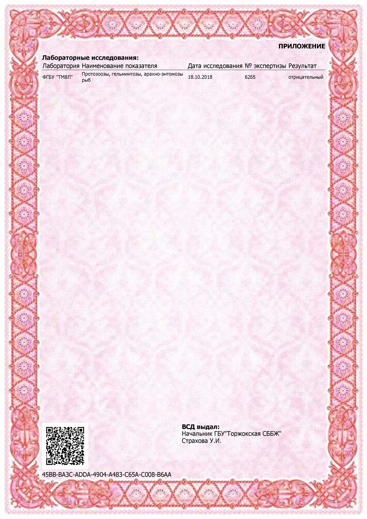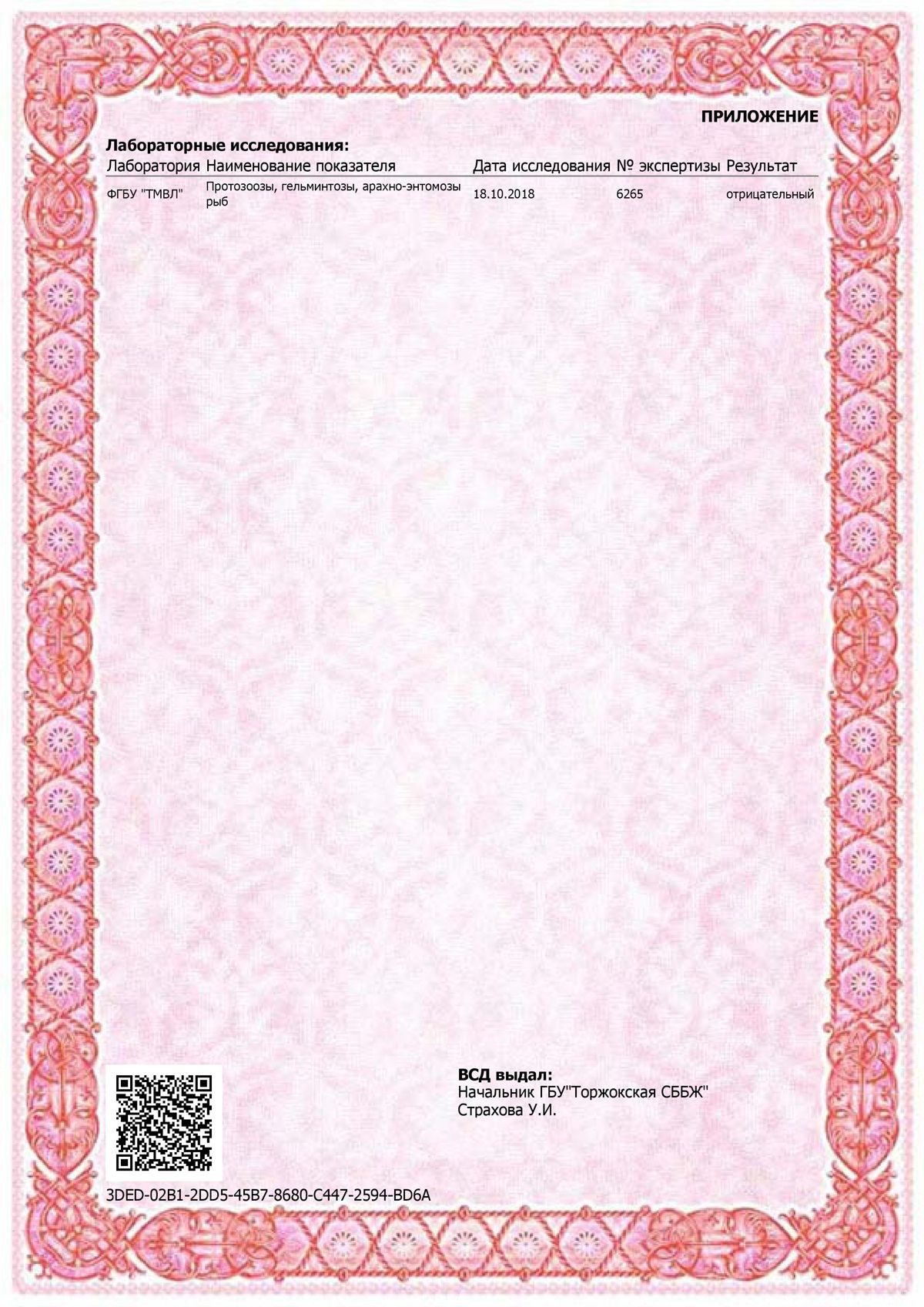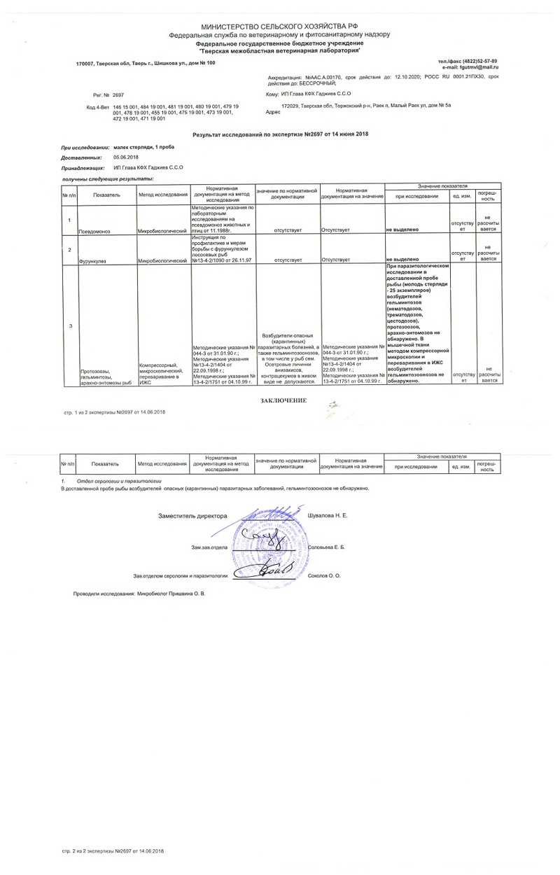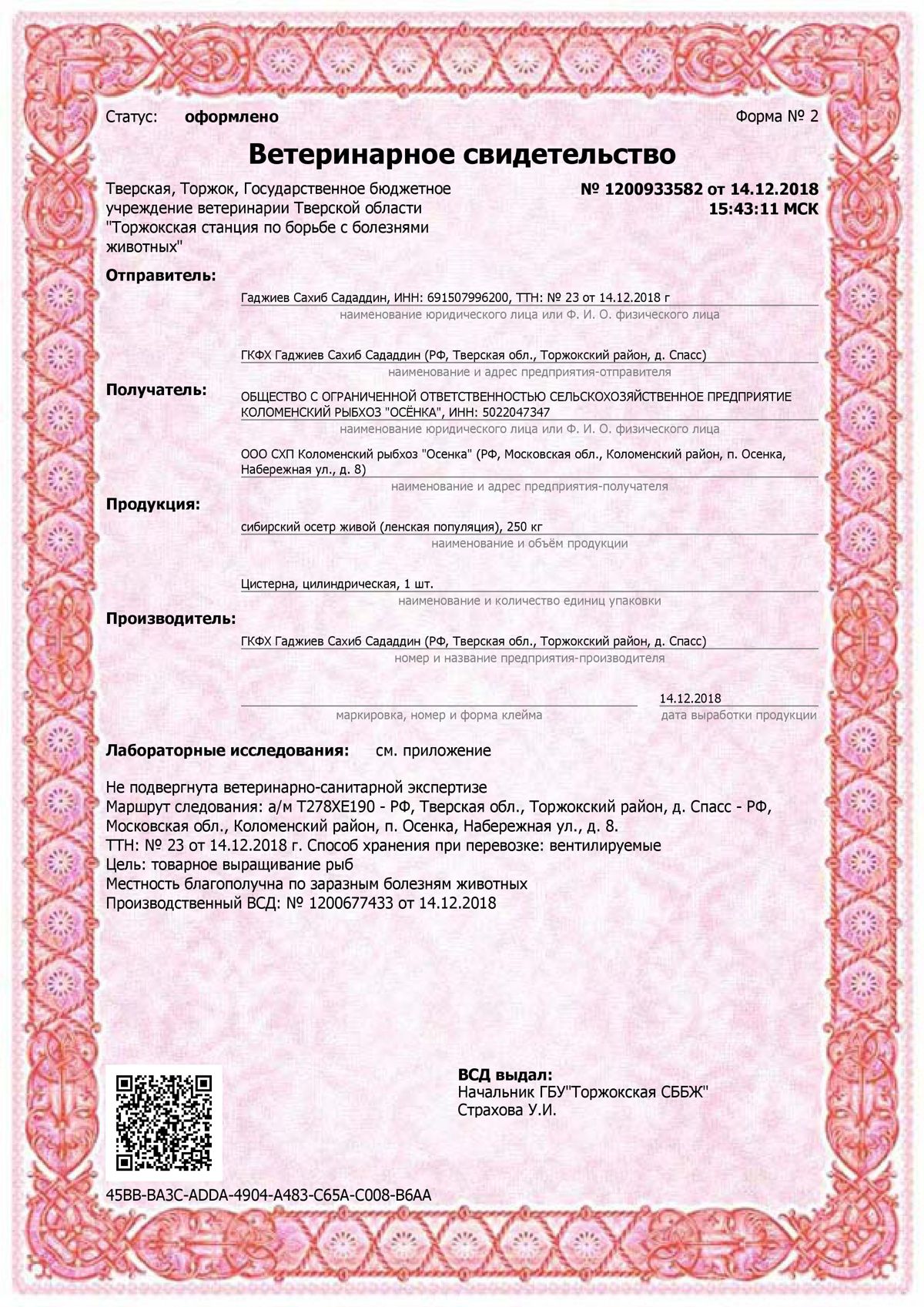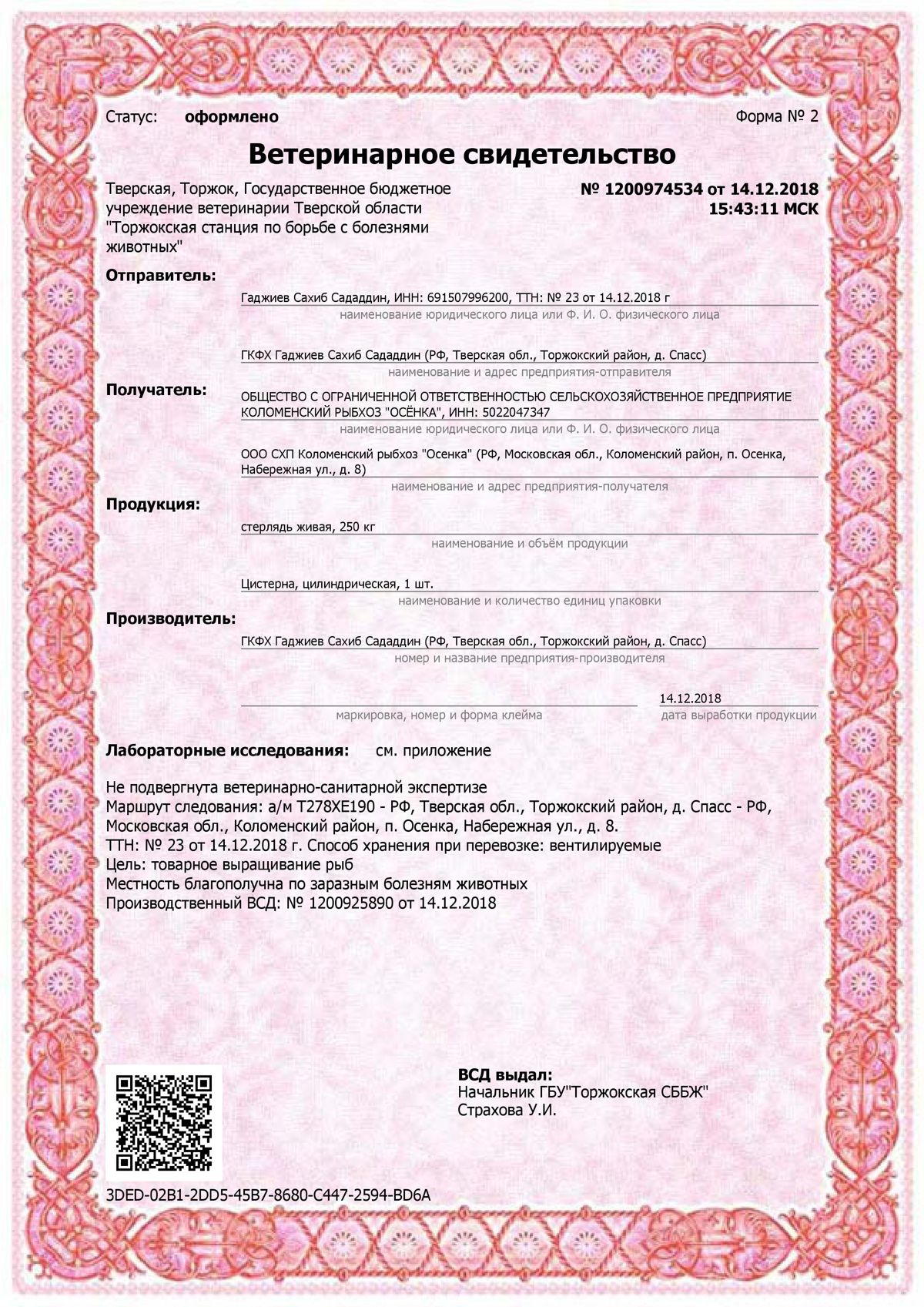 Ветеринарное свидетельство на осетра